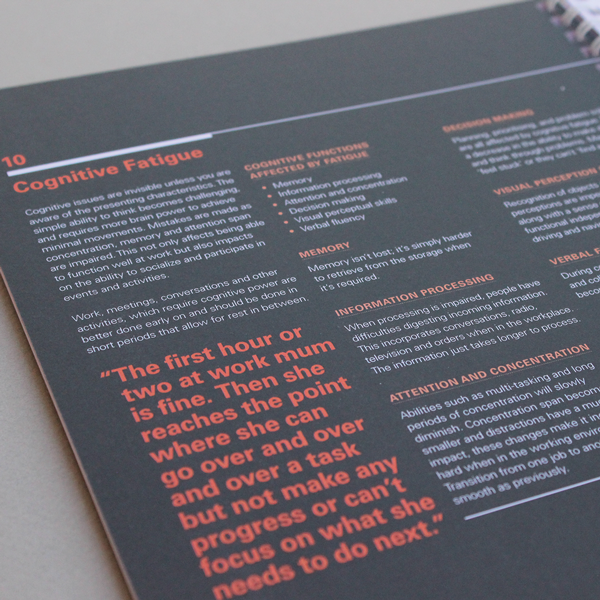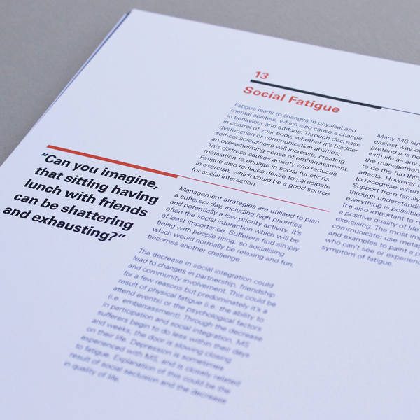 Missed Signals is a publication designed to evoke, engage, and interact with its audience. The functional design, physically and visually represent the experience of ‘fatigue’, a common symptom of Multiple Sclerosis.
